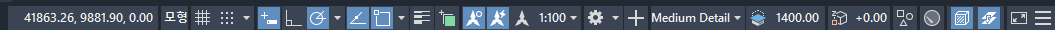 상태막대에는 도면 환경에 영향을 주는 도구, 도면 도구 및 커서 위치가 표시됩니다.