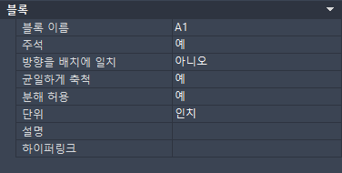 - 특성 팔레트의 블록 아래에서 주석에 대해 예를 선택합니다.
