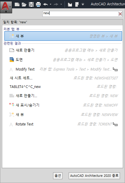 응용프로그램 메뉴에서 명령을 검색한 다음 일치하는 리스트에서 선택할 수 있습니다. 검색 결과는 다음 위치에서 검색됩니다.