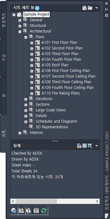 AutoCAD Architecture 2021 Toolset 프로젝트 네비게이터의 프로젝트 시트 세트