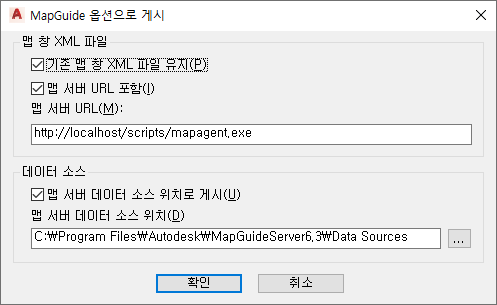 | 기존 맵 창 XML 파일 유지 | 기존 맵 창 XML 파일 유지를 선택합니다. 이 옵션을 통해 현재 위치에 있는 기존 MWX 파일이 덮어쓰기되지 않습니다. 이를 수행하면 사용자는 기본 데이터 또는 형상을 업데이트하거나 재게시할 때 MWX 파일(2차 데이터 소스 테이블 선택, 도면층 특성 또는 주제)에 대해 변경한 내용을 유지할 수 있습니다. |