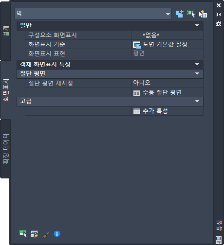 - 객체를 선택하지 않은 경우 화면표시 탭의 맨 아래에서