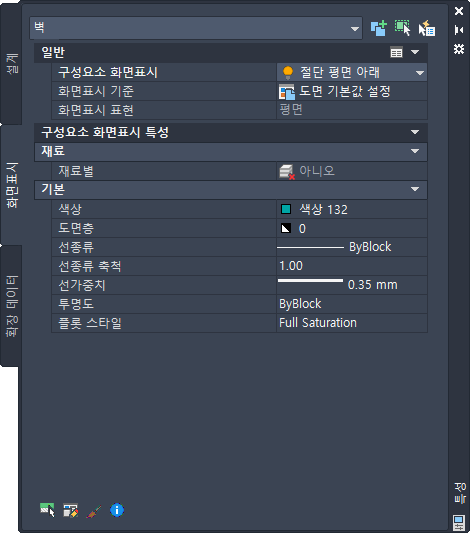 - 특성 팔레트에서 화면표시 탭을 클릭합니다.