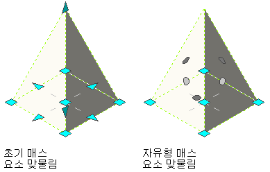 | 인접한 면을 신축하면서 면을 자유롭게 이동 | 면 그립을 클릭하고 누른 상태에서, Ctrl 키를 한 번 누른 다음 새 면 위치를 지정합니다. | 면을 자유롭게 이동, 인접 면 신축 |
