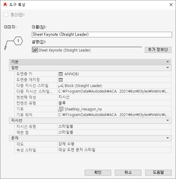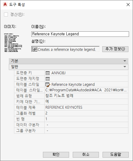 AutoCAD Architecture 2021 toolset에서는 도면에 키노트를 삽입하기 위한 여러 가지 기본 도구가 제공됩니다. 소프트웨어가 로컬로 사용자화되지 않은 경우, 이런 기본 도구는 샘플 주석 도구 팔레트에 있습니다. 또한 기본 도구는 컨텐츠 브라우저의 문서 도구 카탈로그에서 액세스할 수 있으며 i-drop