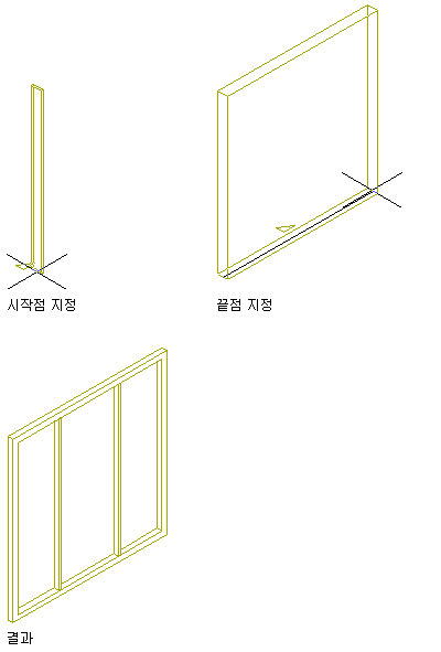다음 과정에 따라 선택한 커튼월 도구에 지정된 특성을 가진 직선 커튼월을 작성하십시오.