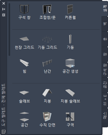 CAD 관리자 또는 다른 사용자가 작성한 사용자 팔레트는 프로젝트나 사무용 표준에 맞게 사용자화된 특성을 가진 지붕 도구를 포함할 수도 있습니다.