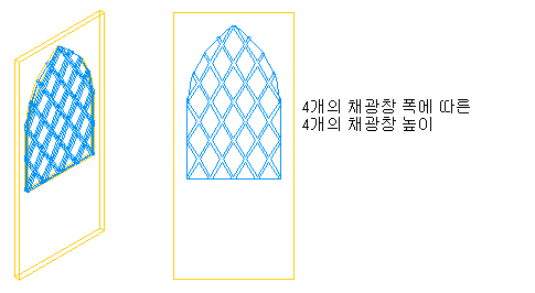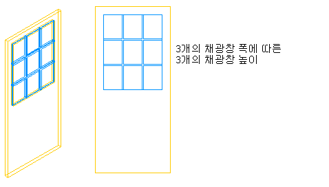 | 문살을 각 유리 구성요소에 적용 | 유리 구성요소에서 단일을 선택하고 색인 번호를 지정합니다. 채광창은 왼쪽 하단 구석에서 시작하여 시계 반대 방향으로 색인화됩니다. |