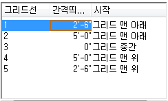 그리드 선 표의 간격띄우기에서 각 그리드 선의 간격띄우기 거리를 지정합니다.