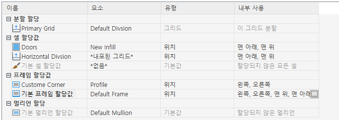 주: 모서리에 마지막으로 지정된 정의만 사용되므로 동일한 프레임 모서리에 여러 개의 정의를 지정하지 마십시오.