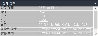 - 외부 참조 대화상자에서 외부 참조의 상세 정보를 봅니다.