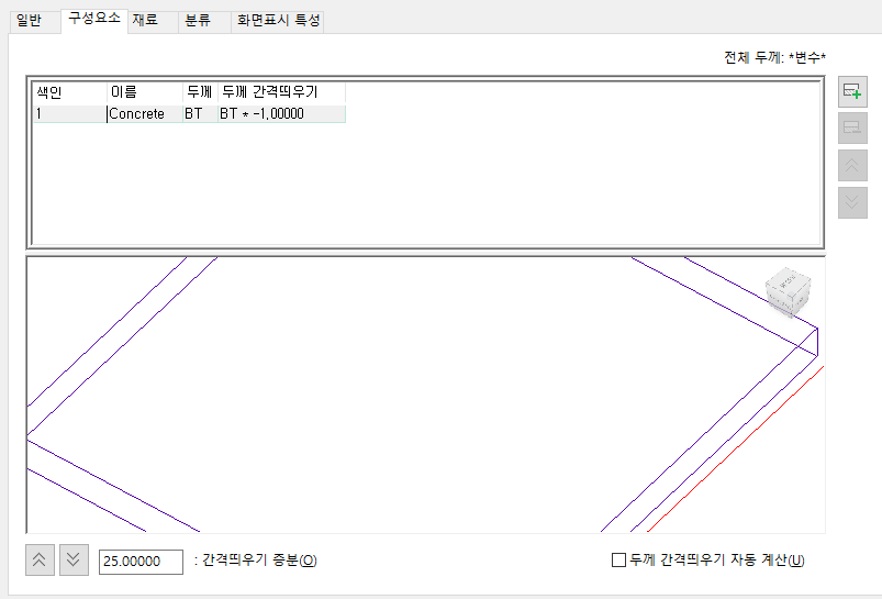 지붕 슬래브 스타일 탭에 포함된 객체 뷰어
