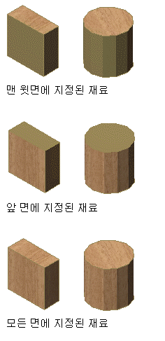 표면 해치를 전달하는 객체의 면이 재료 정의에 지정되어 있습니다. 각 표면 해치 재지정을 작성하지 않으면 재료 정의가 지정된 모든 객체에 동일한 표면 해치 할당값이 표시됩니다.