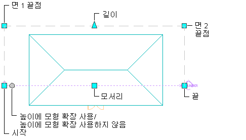 6. 단면 경계의 변 2의 길이를 변경하려면 변 2 끝점 그립을 클릭합니다.
