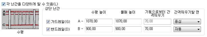 | 가드레일 또는 핸드레일 높이 지정 | 수평 높이에 값을 입력합니다. |