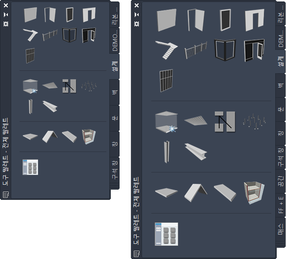 다음 절차에 따라 개별적인 도구 팔레트 모양을 정의하십시오.