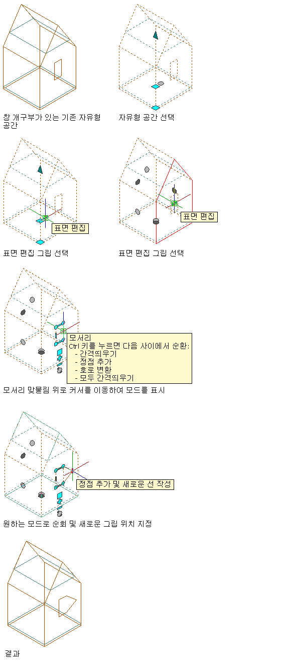 자유형 공간 표면에서 창 개구부의 모서리에 정점 추가