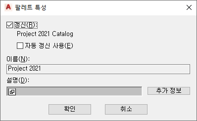 자동 새로고침 사용을 선택한 경우 소프트웨어를 시작할 때마다 링크된 도구 팔레트가 업데이트되어 도구 카탈로그의 도구 팔레트 및 해당 컨텐츠 변경 사항이 반영됩니다.