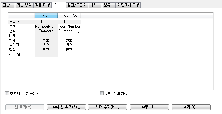 다음 과정에 따라 일람표 테이블 스타일에서 작성된 일람표 테이블에 보고하려는 각 특성에 대한 열을 추가하십시오.
