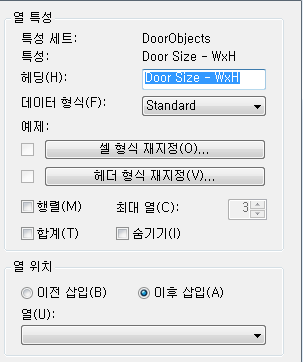 | 열 헤딩의 형식과 방향 지정 | 헤더 형식 재지정을 클릭하고 이 열에서 데이터 셀에만 적용되는 형식 설정을 지정합니다. |
