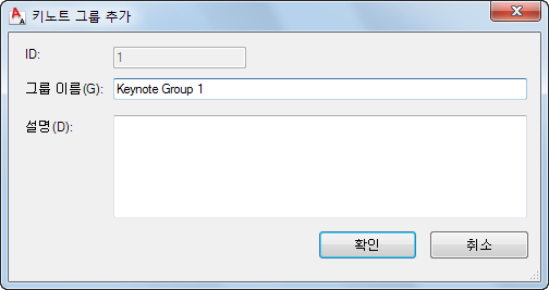 읽기 전용의 ID 필드에 현재 추가 중인 그룹의 데이터베이스 식별자를 보여주는 그룹 추가 대화상자가 표시됩니다.