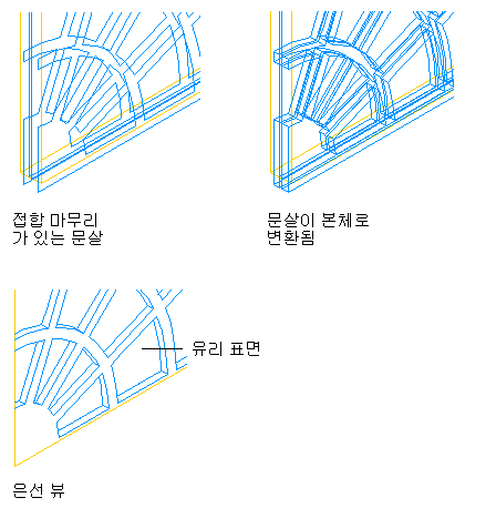 | 문살 교차부분을 구석으로 변환 | 문살에서 접합부 마무리를 선택합니다. |