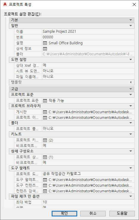 | 프로젝트 유형 | 도구 팔레트 파일 위치 | 프로젝트 도구 팔레트 그룹 |