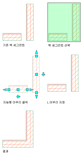 - 교차하지 않는 벽 세그먼트는 명확한 구석 조건에서 교차하는 벽 자리맞추기 선과 만나도록 확장됩니다.