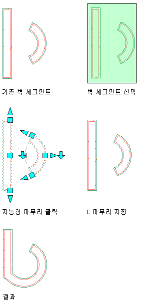 L 마무리는 호 벽 세그먼트와 동일한 방식으로 동작합니다.