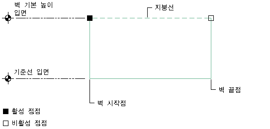 벽의 지붕 및 바닥판 선을 수정하여 직사각형이 아닌 벽을 작성할 수 있습니다.