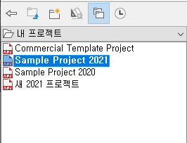프로젝트 브라우저의 왼쪽에 있는 프로젝트 선택기는 사용자가 AutoCAD Architecture 2021 toolset에서 작성한 프로젝트를 표시합니다.