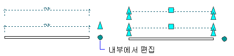 내부 편집 그립을 활성화하기 전과 후의 AEC 치수
