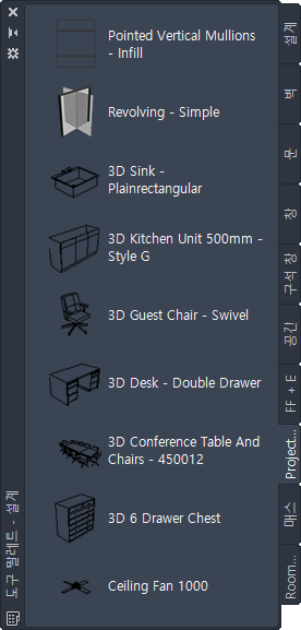 도구 팔레트가 추가된 AutoCAD Architecture 2021 Toolset 팔레트