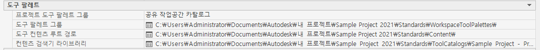 | 프로젝트 유형 | 도구 팔레트 그룹 파일 위치 | 프로젝트 도구 팔레트 그룹 |