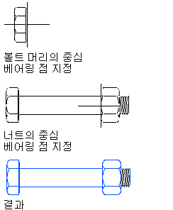 | 다른 기준점 지정 | b(기준점)를 입력하고 새 기준점을 선택한 후 Enter 키를 눌러 새 기준점을 사용하는 구성요소를 삽입합니다. |