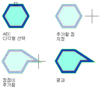 기존 AEC 폴리곤에 정점을 추가하여 쉐이프를 변경할 수 있습니다. 정점은 AEC 폴리곤의 모서리가 서로 만나는 위치입니다.