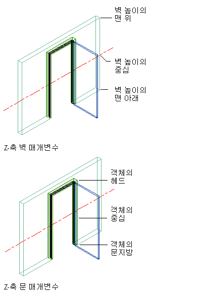 | 벽 높이의 중심을 참조점으로 사용 | 시작에서 벽(곡선) 높이의 중심을 선택합니다. |