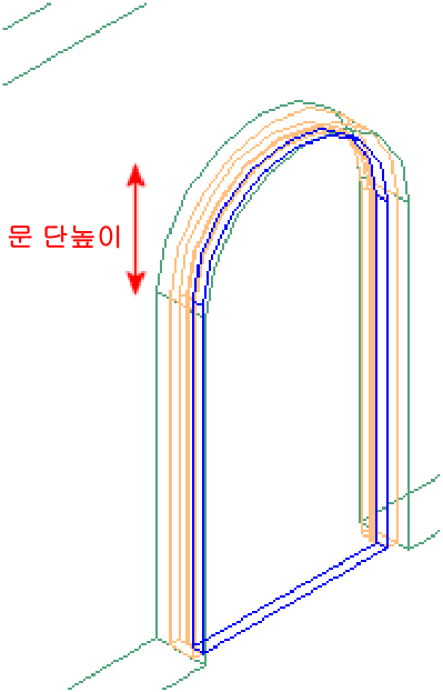 | 단높이 | 고딕, 아치, 돌출 오각형 문 쉐이프 전용으로 사용 가능 | 문에서 포인트되거나 아치된 맨 위 높이를 지정합니다. 그림![]() |