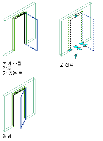 | 헤드 높이/문지방 높이 | 부착된 문만 | 선택한 수직 정렬에 따라 문의 헤드 높이나 문지방 높이를 수정할 수 있습니다. 예를 들어 경사진 문지방을 작성하려는 경우 수직 정렬에서 문지방을 선택한 다음 문지방 입면 아래에서 문지방의 입면을 입력합니다. | 헤드 높이 또는 문지방 높이에 대한 값을 입력하거나 화면에서 선택 점에 대한 |