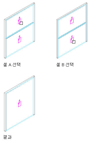 다음 절차에 따라 조합창/문 셀을 병합하십시오.
