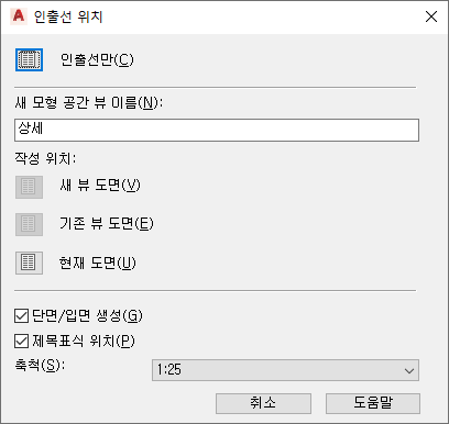 - 새 모형 공간 뷰 이름에서 단면을 포함하는 새 모형 공간 뷰의 이름을 입력합니다.