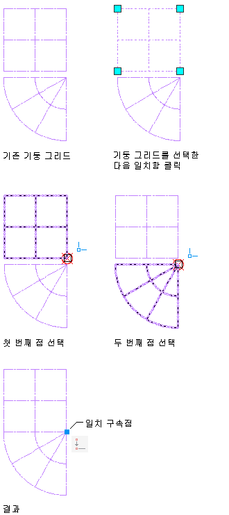 일치 구속조건을 사용하여 두 기둥 그리드를 함께 앵커합니다.