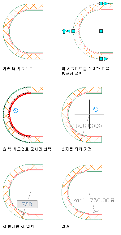 반지름 구속조건을 사용하여 호 벽 세그먼트의 반지름을 유지합니다.