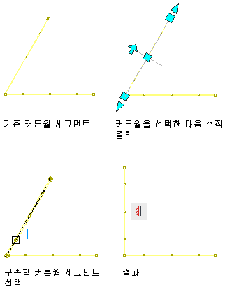 수직 구속조건은 AEC 객체의 선이나 점 쌍을 현재 UCS의 Y 축과 평행하게 놓이도록 구속합니다. 두 점을 수직으로 구속하도록 지정하면 두 번째 점이 첫 번째 점에 수직이 됩니다.