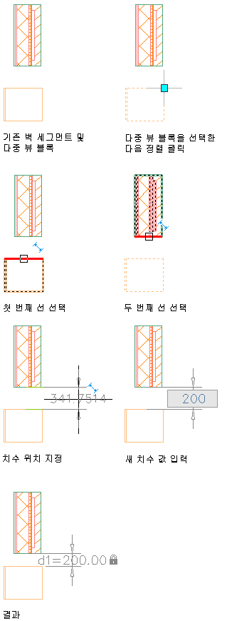 정렬 구속조건을 사용하여 벽 세그먼트와 다중 뷰 블록 사이의 특정 거리를 유지합니다.