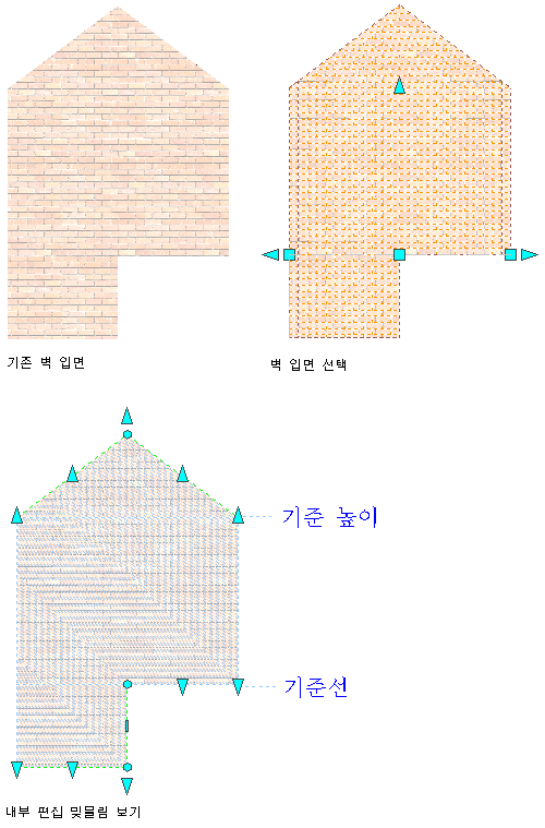다음 과정에 따라 벽의 지붕 선 또는 바닥판 선의 형상을 편집하십시오.
