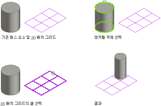 셀 앵커를 객체에 추가하여 배치 그리드 및 볼륨 그리드의 셀에 연결할 수 있습니다.