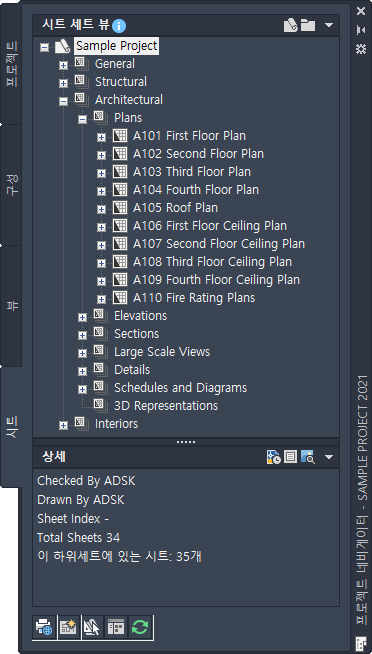 AutoCAD Architecture 2021 Toolset 프로젝트의 시트 세트