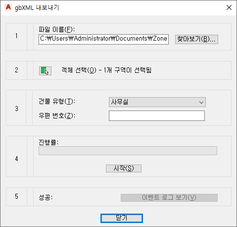 - 진행률: 내보내기를 실행하려면 시작을 클릭합니다.