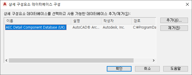 - AEC 컨텐츠 페이지에서 상세 구성요소 데이터베이스의 추가/제거 버튼을 클릭합니다.